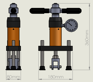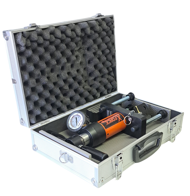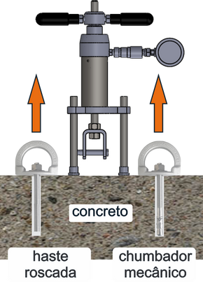 Equipamento hidráulico mecânico, utilizado para testar a confiabilidade da instalação do elemento de fixação no concreto.